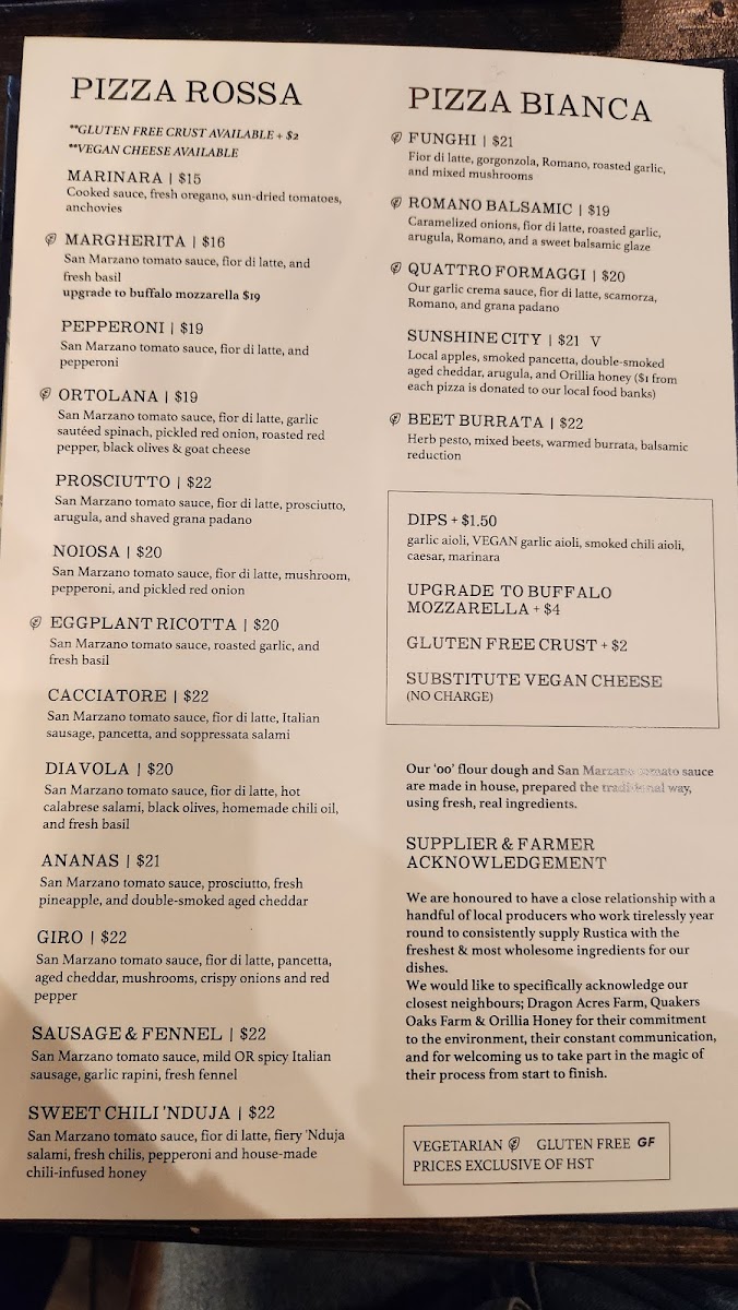 “ My partner and I are visiting from out of town and we visited Rustica Pizza Vino for the first time and we were blown away. The ambience was great, our server Mike was friendly, attentive & knowledgeable & the food was top notch! So glad we were able to have this experience and if we find ourselves back in Orillia, we will be back ”
